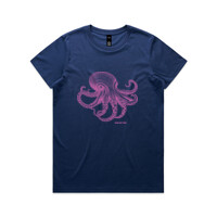 This New Zealand made designer t-shirt captures the mesmerizing beauty of one of the sea's most intelligent creatures, presented in a vibrant, ethereal pink hue.