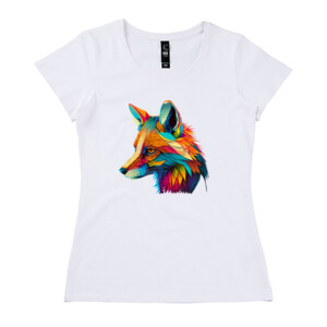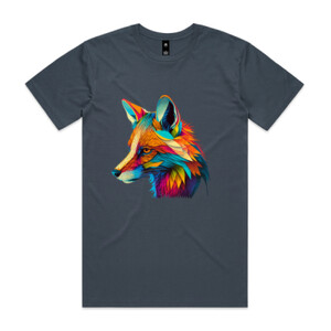The "Colourful Fox" tee features an enchanting, vivid portrayal of a fox, brought to life with an array of bright, eye-catching hues. The design melds the natural elegance of the fox with a splash of artistic creativity, symbolizing the animal's playful and mysterious nature.