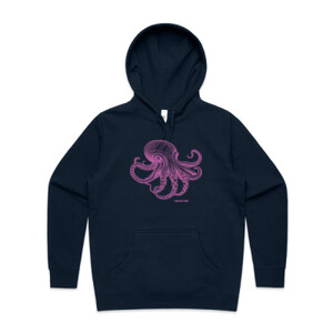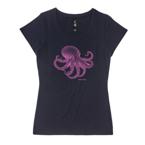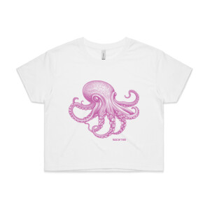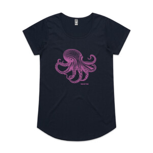 This New Zealand made designer t-shirt captures the mesmerizing beauty of one of the sea's most intelligent creatures, presented in a vibrant, ethereal pink hue.