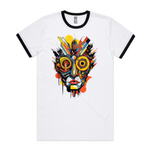 Delve into a world of emotion and color with SOCIETEE's "Misunderstood" Tee. This New Zealand made designer t-shirt captures the poignant tale of a robot, portrayed with a touch of humanity, its face reflecting sadness despite its vibrant, colorful appearance.
