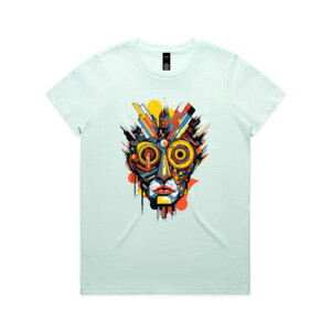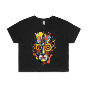 The "Misunderstood" tee features a strikingly detailed illustration of a robot's face. The design conveys a sense of depth and emotion, unusual for a robotic figure, with a melancholic expression that speaks volumes about feeling out of place or misunderstood. The robot's face, while inherently mechanical, is adorned with a spectrum of bright, lively colors, contrasting its sorrowful demeanor and symbolizing the complexity of emotions hidden beneath the surface.