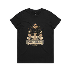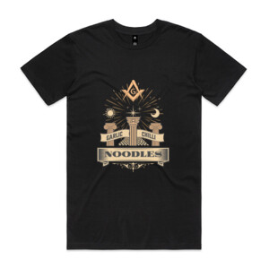 Dive into a world where noodles meets mystical with SOCIETEE's "Mystic Garlic Chilli Noodles" Tee. This New Zealand made designer t-shirt blends the vibrant allure of a beloved dish with the enigmatic symbols and geometry of Masonic spiritual art, creating a truly unique fashion statement.
